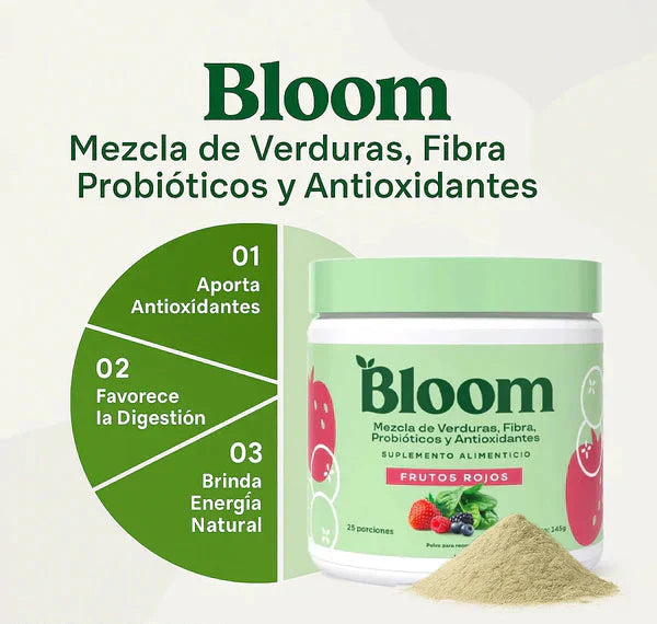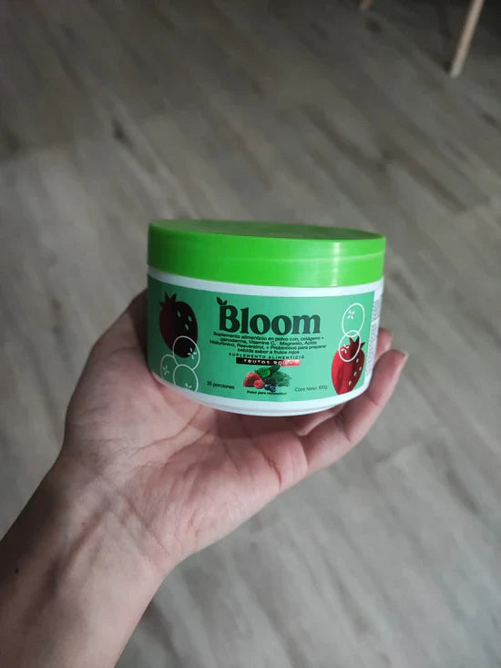 🌿Agrega 1 cucharada de Bloom™ en un vaso de 200 ml de agua o tu jugo favorito.